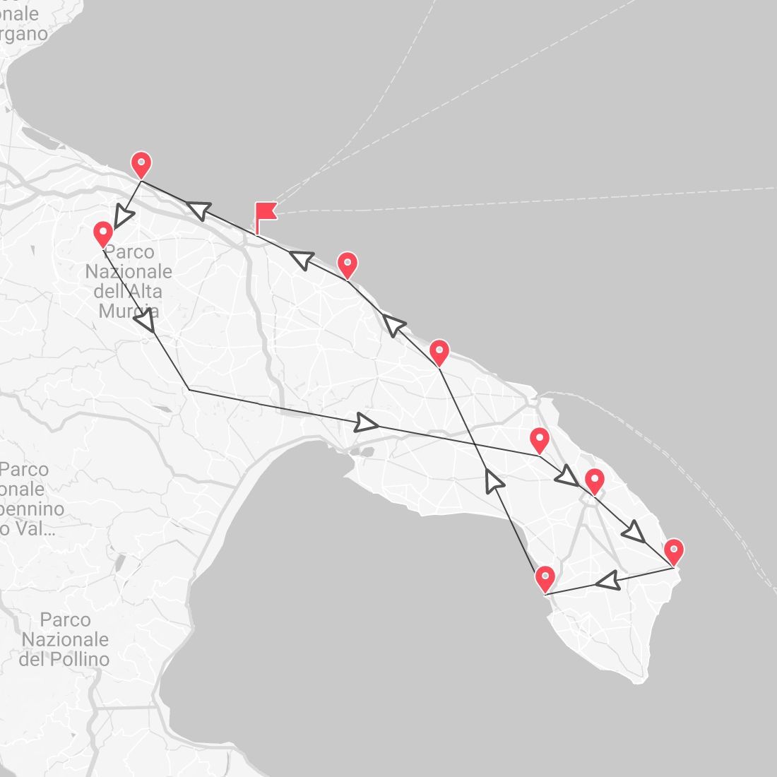 Questo viaggio finisce a Brindisi. Il viaggio termina ufficialmente alle 12:00 dell’ultimo giorno, quindi ti consigliamo di organizzare i tuoi transfer per il ritorno di conseguenza. Per esempio: